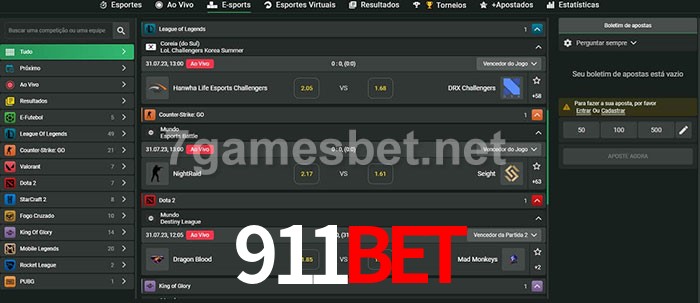 O 911Bet oferece uma grande seleção de opções de apostas em e-sports com probabilidades competitivas